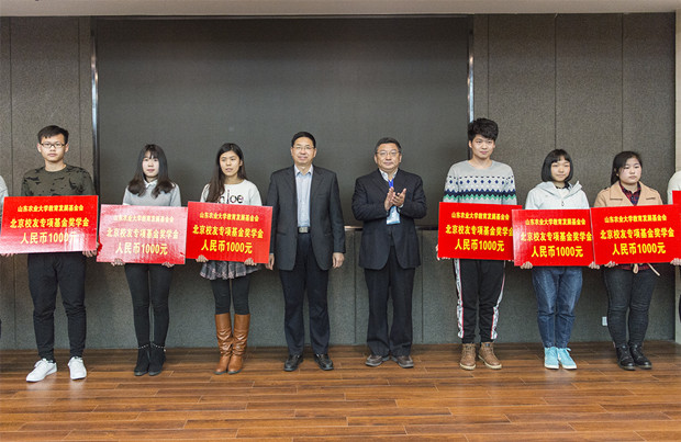 会上,学校发展规划处处长米庆华介绍了校友联谊会、教育发展基金会工作情况及下一步工作思路。学校办公室主任卢国强宣读了北京校友奖学金获得者名单,共有100名学生获此奖励。张宪省、王涛为获奖同学代表颁发了奖金。