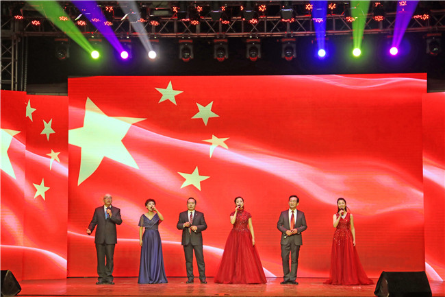 演出中,参演师生们用优美的舞姿、激昂的歌声抒发着对祖国和学校的热爱。歌曲《撸起袖子加油干》彰显了农大人在中国特色社会主义新时代奋发进取的豪情;附校小朋友们的舞蹈《鱼儿乐》展现了祖国花朵的朝气与活力;《T台秀》矫健的步伐走出了离退休教师们健康阳光的精神风貌;手语舞《国家》诉说着农大师生厚重的家国情怀;舞乐合编《丝路驼铃》通过“一带一路”战略歌颂祖国的飞速发展;舞蹈《民族风》展现了少数民族学生风采,传递校园温暖,促进民族团结;哑剧《疯狂的教室》源于“促学风、严考风” 团日活动,表达了农大学子放下手机、回归课堂的决心,折射出追求优良学风的精神品质;诗朗诵《第一书记》讲述了学校16位第一书记在精准扶贫路上的感人故事,展示了学校一年来的发展成就,鼓舞人心、催人奋进!
