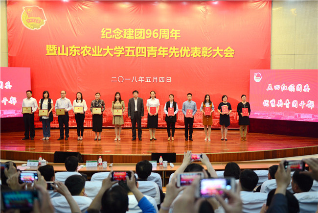 不忘初心跟党走,青春建功新时代。5月4日,学校在文理大楼报告厅举行纪念建团96周年暨山东农业大学五四青年先优表彰大会。学校领导徐剑波、朱莉、杨天梅、张然出席活动并为青年先优集体和个人颁奖。