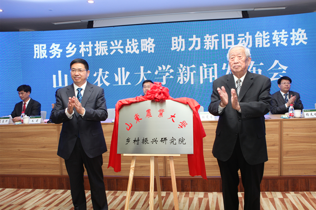 张宪省和束怀瑞共同为山东农业大学乡村振兴研究院揭牌。据了解,为打造省内一流、国内知名的乡村振兴战略高端智库,提升学校服务党和政府科学决策、民主决策的能力,经省编办同意,学校成立乡村振兴研究院。成立后的乡村振兴研究院将整合学校现有的“三农”问题与农业文化研究中心、新农村发展研究院、现代农业发展研究院等研究机构的职能,还要整合校内科研力量,协同国内高校、科研院所,围绕乡村振兴战略的理论与实践开展研究,集科研、社会服务和人才培养于一体,为地方政府、农业企业提供政策咨询、发展规划、成果推广、人才培训等多方面的服务。