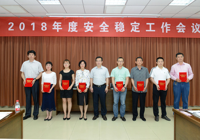 会议传达了上级文件精神和学校2018平安校园建设提升年实施方案,表彰了2017年度社会治安综合治理暨平安校园建设先进个人。徐剑波为先进个人代表颁奖,并与经管学院、信息学院、教务处、后勤处现场签订《山东农业大学社会治安综合治理暨平安校园建设责任书》。