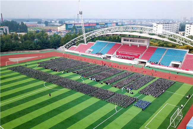 开学典礼上,举行了军训汇报表演。军训学员们精神饱满、整齐昂扬地正步走过主席台接受检阅,展示军训成果。据了解,为鼓励先进和深化军训成果,学校决定授予29名教官“优秀教官”荣誉称号,授予25支连队“先进连队”称号,授予377名同学“优秀学员”称号。