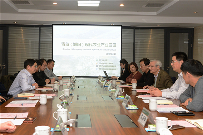 许智宏院士介绍了项目的来龙去脉,分析了当今社会对现代农业和高品质农产品的迫切需求,希望山东农业大学青岛产业研究院能成为校地企合作的一个标杆。李守林和张建介绍了青岛城阳区整体招商引资引智情况,对山东农业大学在青岛城阳区办研究院充满期待。华诚海逸集团相关人员介绍了产业园和研究院建设的初步设想。