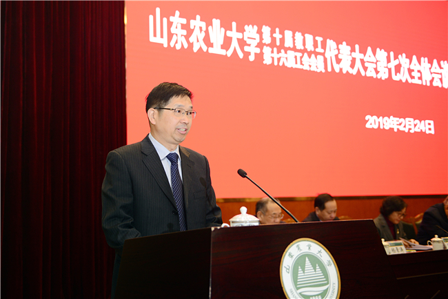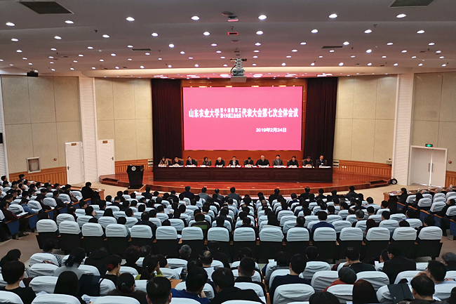 2月24日,山东农业大学第十届教代会暨第十六届工代会第七次全体会议、党委中心组学习暨处级干部工作研讨班在文理大楼学术报告厅举行。