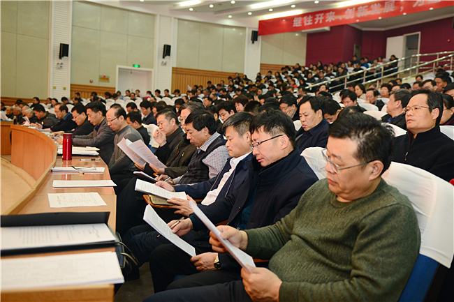 张宪省全面回顾了学校2018年的工作和取得的主要成绩,分析了制约学校改革发展的问题与不足。他指出,2019年学校要落实立德树人根本任务,以加快“双一流”建设为主线,以推进内涵发展和深化综合改革为抓手,强化责任担当,狠抓工作落实,提升学校综合办学实力和核心竞争力,推动学校各项事业再上新台阶。