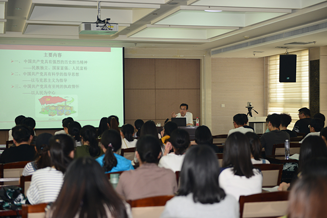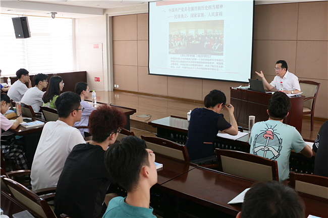 6月19日下午,党委书记徐剑波以“中国共产党为什么‘能’”为主题,为国际交流学院104名大一学生上了一堂精彩纷呈的思政课。