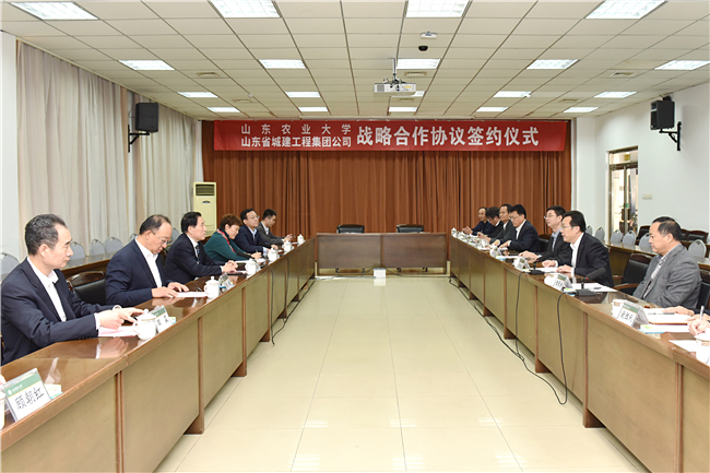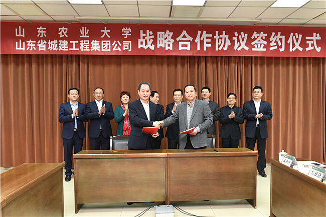10月25日,山东农业大学与山东省城建工程集团公司签订战略合作协议。根据协议,双方将在科研实践育人、科研平台建设、毕业生就业、科技成果转化等方面开展全方位合作。
