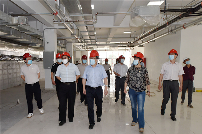 6月30日,党委书记徐剑波、副校长嵇景涛来到南校区西北片区建设现场,与项目各参建单位负责人及一线工程人员座谈交流,深入施工现场实地了解建设进展,听取临时党支部工作情况,看望一线工程作业与管理人员,并为他们送去慰问品。