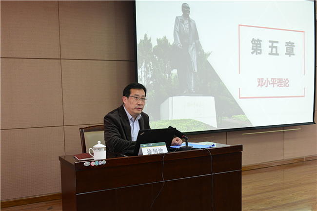 紧接着,在一个小时的课时中,徐剑波结合时代背景,梳理了我国社会主义建设的经验教训,回顾了改革开放的实践历程,讲授了“邓小平理论的形成、邓小平理论的基本问题和主要内容、邓小平理论的历史地位”三个主题的内容。