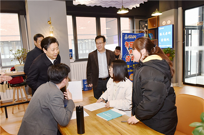 调研期间,王艺华一行参观了学校校史馆、作物生物学国家重点实验室,并到南校区西北片区考察办学条件,与经济管理学院(商学院)青年师生亲切交流。泰安市相关部门负责同志,学校办公室、社会合作与成果转化处、经管学院(商学院)等有关部门及学院负责人参加活动。