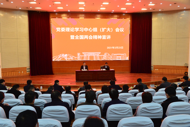 3月23日,学校召开党委理论学习中心组(扩大)会议,专题传达学习2021年全国两会精神。党委书记徐剑波主持会议,要求全校师生深入学习贯彻习近平总书记在全国两会期间的重要讲话精神,深刻理解贯穿其中的马克思主义立场观点方法和蕴含其中的新理念新思想新战略,树牢“四个意识”、坚定“四个自信”、做到“两个维护”,进一步提振发展信心,坚定目标方向,以更加扎实的工作举措为“十四五”开好局、起好步,在冲击国家一流学科、建设高水平大学进程中迈出坚实步伐。全国人大代表、校长张宪省作全国两会精神的宣讲报告。