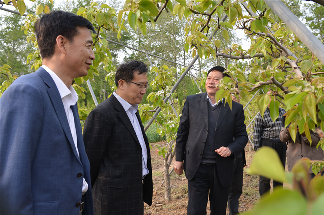 春天里的冠县乡村,处处生机勃勃、欣欣向荣。徐剑波一行先后来到山东省乡村振兴重点项目——冠优农谷田园综合体,观光农业产业代表——中华第一梨园以及位于毛白杨林场的山东农大“山农酥梨”和红肉苹果培育基地,实地了解项目建设情况。毛白杨林场是我校园艺学院陈学森教授的实验基地,也是冠县农业升级换代的引领示范地。陈学森教授向大家介绍“山农酥梨”、红肉苹果的品质特点和产业空间,广阔的发展前景让人倍感振奋。