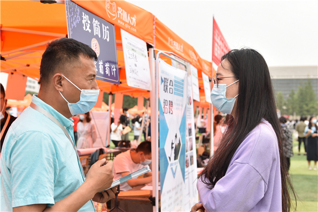 本次就业市场还配合山东省实施“万名博士、十万硕士、百万大学生创业齐鲁计划”,邀请山东省内634家企业线上、线下形式参加,提供岗位近3万个,占就业市场岗位总数的80%以上。另外,为便于学生按意向求职地区求职,学校把参会单位按16地市进行划分,设置地市专区并邀请泰安、潍坊、德州、日照、泗水、邹城等地市人社部负责人进校宣讲人才政策,同时通过校内大屏幕播放地市人才引进政策等,积极促进毕业生留鲁就业创业。