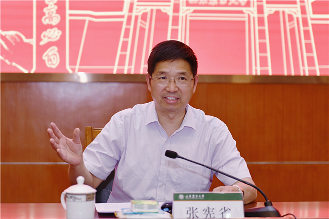 6月15日,山东农业大学研究生教育会议在文理大楼召开,深入学习贯彻习近平总书记对研究生教育的重要指示精神和落实全国、山东省研究生教育会议部署要求,进一步总结工作、分析问题,加快构建新时代创新拔尖人才培养体系。校长张宪省出席会议并讲话,副校长司金贵主持会议。