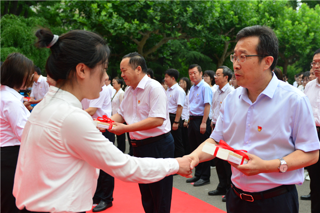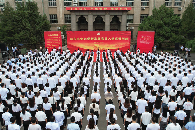 “我志愿加入中国共产党,拥护党的纲领,遵守党的章程……”6月25日上午,山东农业大学新党员入党宣誓活动在南北校区同时举行,学校党委书记徐剑波出席活动并讲话。学校党委常委向新发展党员代表赠送学习读物。