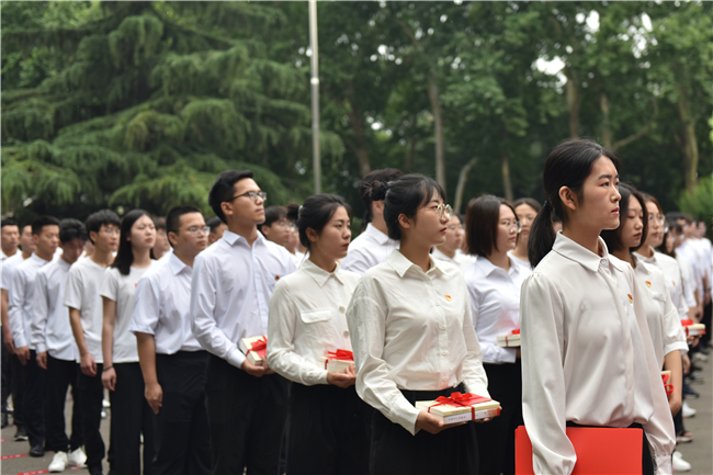 党委常委、组织部部长岳远彬主持宣誓活动并领誓,本科生新发展党员代表孙泽邈、研究生新发展党员代表袁路路分别作表态发言。各学院、有关部门负责同志,新发展党员所在党支部书记,2021年新发展党员代表等1120余人参加活动。
