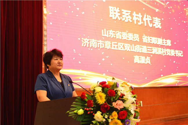 山东省委委员、省妇联副主席、济南市章丘区双山街道三涧溪村党委书记高淑贞代表联系村讲话。她深情回忆起习近平总书记对三涧溪村的殷切关怀和重要嘱托,表达了发挥党建统领作用、带领村民实现乡村振兴的决心和信心。她说,多年来,山东农业大学的专家为三涧溪村送科技、送人才,助力村容村貌发生翻天覆地的变化。现在,学校“百名党员专家联百村”又将三涧溪确定为联系点,我们深受感动、备受鼓舞,将倍加珍惜这次机会,尊重人才、尊重知识、尊重劳动,用心用情用力做好各项服务保障,让农大专家在三涧溪村更好地干事创业,为村集体经济和产业发展、为村民增收贡献智慧和力量。