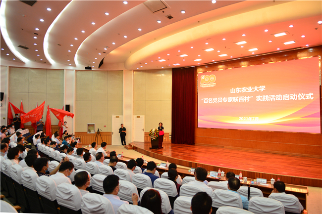 在全国上下深入学习宣传贯彻习近平总书记“七一”重要讲话精神之际,7月14日,山东农业大学启动“百名党员专家联百村”实践活动。学校117名党员专家带领318名研究生,组成117支乡村振兴服务队,正式接旗出征。