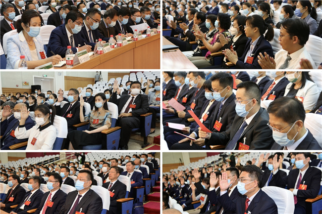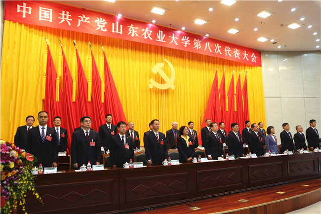 在雄壮的《国际歌》中,中国共产党山东农业大学第八次代表大会胜利闭幕。