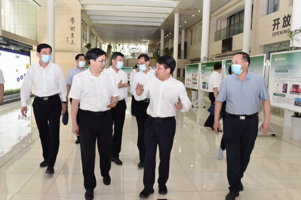 5月19日,山东省副省长邓云锋来校,调研“双一流”建设有关工作。山东省教育厅党组书记、厅长李明,泰安市委副书记、市长李兰祥,学校党委副书记、校长冷畅俭,主题教育省委第二十五巡回指导组副组长张荣庆,党委副书记嵇景涛,党委常委、副校长王勇,山东省文化和旅游厅一级巡视员王廷琦,泰安市委常委、宣传部部长王爱新参加活动。