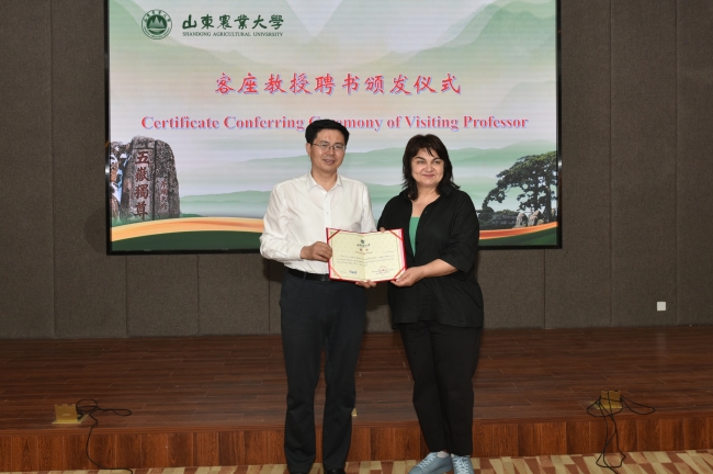 巴良·阿努什院士真诚感谢学校的热情接待,对学校近年来取得的成就表示赞赏,期待此次访问能为双方搭建沟通桥梁,增进合作与友谊。她通过带过来的宣传片介绍了乌克兰国家农业科学院的基本情况,表示回国后会尽快推动小麦育种等相关专家,与我校专家学者交流研讨,探寻合作渠道。从冷畅俭手中接过客座教授聘书,巴良·阿努什院士非常激动,说自己将这个聘书视作极高荣誉,会尽自己所能让双方合作结出美丽果实。