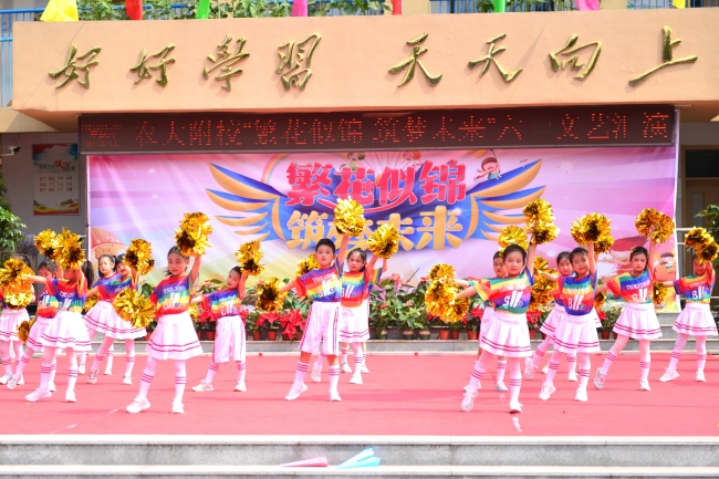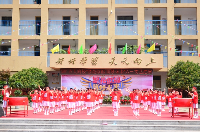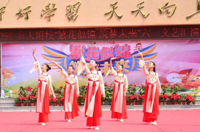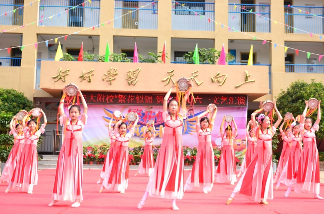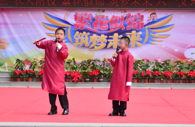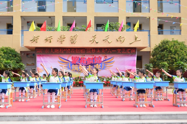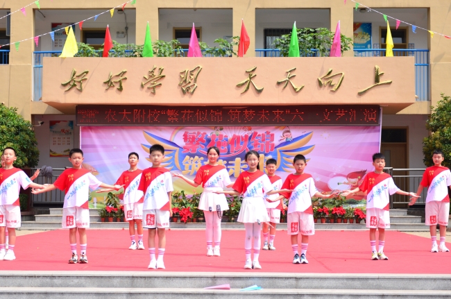 农大附校举办“繁花似锦 筑梦未来”文艺演出,欢庆“六一”国际儿童节。师生同台分别表演了歌舞、相声、诗朗诵、健美操、经典诵读等丰富多彩的节目,孩子们用动听的歌声唱出心中的幸福,用质朴的语言道出进取的决心,用自己的方式表达对幸福童年、快乐成长的赞美,表达对学校及老师辛勤培养的感激之情。整场演出内容丰富,形式多样,精彩纷呈,高潮迭起,激起师生和家长们一阵又一阵热烈的掌声,孩子们沉浸在节日的喜悦之中,整个校园成了一片欢乐的海洋。