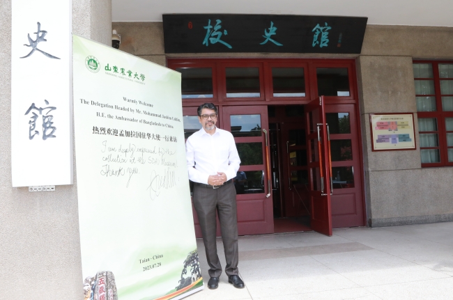 徐剑波对穆罕默德·贾西姆·乌丁一行的来访表示热烈欢迎,并介绍了我校的办学优势和特色。他说,中孟友谊源远流长、历久弥新。近年来,两国在农业、教育、经济等领域合作密切,成果丰硕。山东农业大学期待与孟加拉国的高校、科研机构等开展广泛而深入的交流合作,共同为高质量建设“一带一路”、落实全球发展倡议、推动构建人类命运共同体做出更大的贡献。