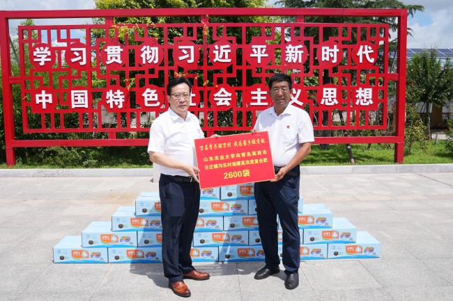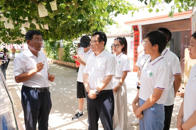 在莱西市日庄镇沟东村,徐剑波详细了解当地乡村治理、产业发展和推动乡村振兴情况,向当地赠送新型农用复合肥料,与专业教师一起开展技术指导,助力当地农业生产。期间,徐剑波看望慰问正在该村开展“万名学子联万村”暑期大调研活动的师生,并和他们座谈交流。徐剑波指出,“万名学子联万村”暑期大调研活动是学校开展主题教育、贯彻落实习近平总书记给中国农业大学科技小院的同学们重要回信精神的有力实践,也是推动科产教深度融合、服务农业强省建设的有效举措,希望在一线调研的同学与老师们一道,发扬“自找苦吃”的精神,将课堂知识与乡村实践紧密结合起来,扎实开展好大调研工作。同时积极推进科技服务驿站建设,推动学校科技、人才、成果、技术等更快、更多的涌入乡村一线,切实为农业农村发展作出应有贡献。他勉励同学们要以本次活动为契机,扎根基层、了解农村、了解农民、了解农业产业,在实践中厚植爱农情怀,练就兴农本领,努力成长为“一懂两爱”的高素质农林人才,为农业农村现代化建设贡献青春力量。