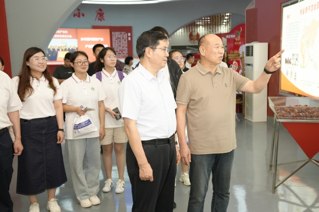 在武城县武城镇尚石庄村,冷畅俭详细了解了乡村治理、产业发展、乡村规划等情况,看望了正在村庄开展“万名学子联万村”暑期大调研的师生。在座谈交流中,冷畅俭听取了参加调研师生在调研过程中的感受和体会,对参加调研师生的饱满热情和认真态度给予充分肯定,对市县镇村为大调研工作提供的支持和帮助表示感谢。他表示,总书记给中国农大科技小院学生的回信,给全国涉农高校学生发出了要“志存高远、脚踏实地,把课堂学习与乡村实践紧密结合起来,厚植爱农情怀、练就强农兴农本领”的号召,要通过大调研真正走进乡村、理解乡村、助力乡村。学校也将通过大调研充分掌握乡村一线农情、社情、产情,不断推动校地、校社、校产的深度融合,更好服务乡村振兴。他详细询问了师生在调研过程中遇到的问题和困难,并督促学校部门、学院加强协调和帮助,更好支撑调研活动的顺利开展。