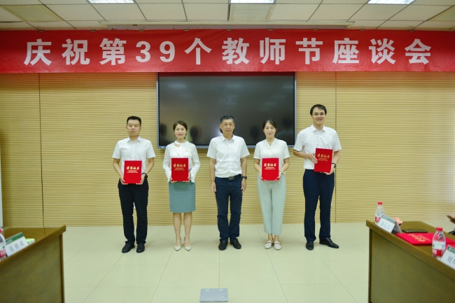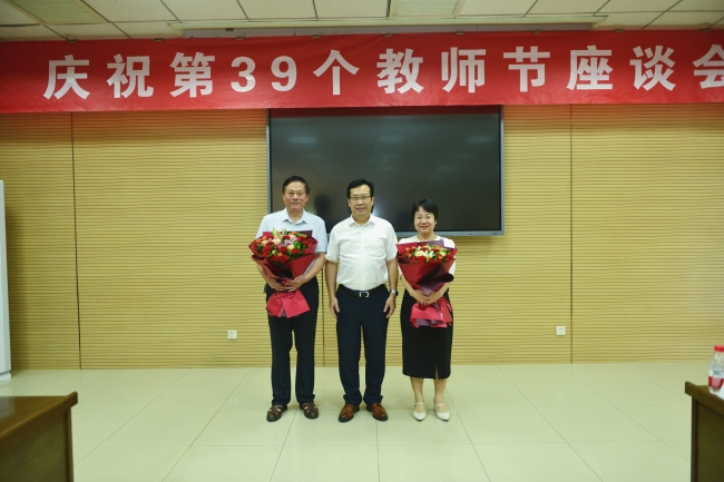 9月8日,第39个教师节来临之际,学校召开座谈会交流教育教学工作经验,表彰先优典型。党委书记徐剑波出席会议并讲话,代表学校向奋战在教书育人、管理育人、服务育人岗位上的全校教师和教育工作者致以节日的祝贺,勉励大家要有坚定的信念、高超的本领、高尚的师德、过硬的担当,在学校争创“双一流”征程中作出应有的贡献。党委副书记、校长冷畅俭,副校长林海出席座谈会并为受表彰教师代表颁奖,党委副书记嵇景涛主持座谈会。党委常委、副校长王勇宣读表彰决定。