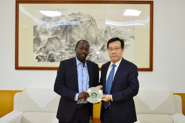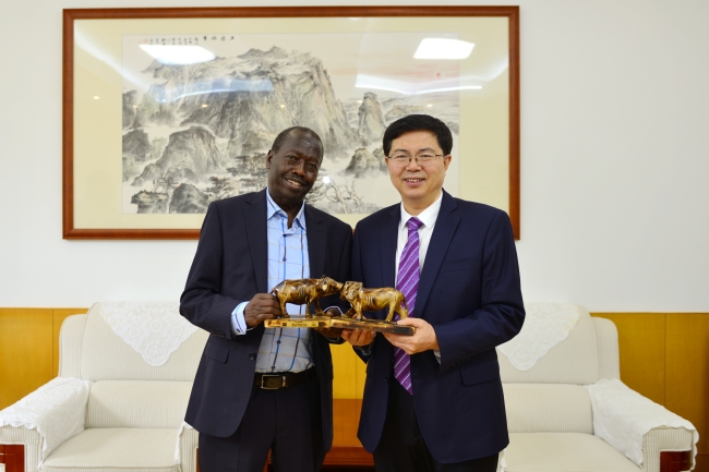 本杰明·切塞尔·切博伊郡长对我校的热情接待表示感谢,介绍了肯尼亚农业现状,表示大数据中心的人工智能技术、农机实验室的现代农业机械给他留下了极为深刻的印象,提议巴林戈郡与我校在灌溉农业、育种栽培、粮食安全、畜牧养殖等领域开启全方位、宽领域、深层次的合作交流。他说,这次来访是一次有价值的学习之旅、友谊之旅,希望巴林戈郡与山东农业大学携手共赢,为保障全球粮食安全、推动落实“一带一路”倡议贡献合力。