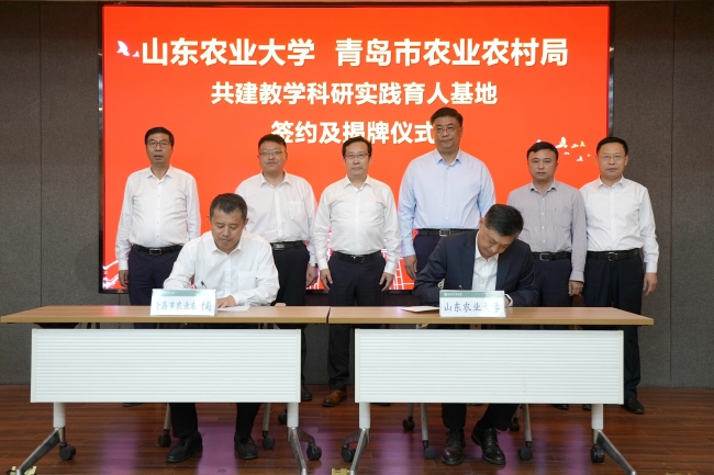 党委书记徐剑波出席青岛市大调研座谈会。会上,学校与青岛市农业农村局签约,共建山东农业大学青岛市农业农村大数据中心教学科研实践育人基地。徐剑波与中共青岛市委农办主任,青岛市农业农村局党组书记、局长,青岛市乡村振兴局局长袁瑞先共同为基地揭牌。青岛清原作物科学有限公司向学校捐赠奖学金500万元。公司总经理、我校校友庄润青代表企业与学校签订捐赠协议,就校企全面战略合作进行了对接。