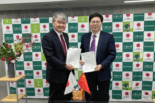 在日本千叶大学,冷畅俭一行会见该校副校长、园艺学部部长松冈延浩教授。双方在园艺等领域深化科研合作、加强人才培养、合作举办学术交流活动等达成广泛共识,并签署合作协议。在千叶大学期间,冷畅俭参观了千叶大学宇宙园艺研究中心、环境健康科学中心和植物工厂基地,与该校有关专家学者围绕科研合作、师生交流进行了深入探讨。