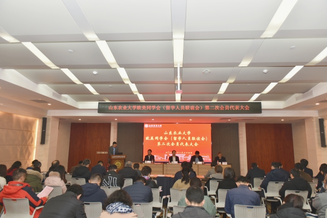 赵孝民代表学校欧美同学会第一届理事会作工作报告,会议审议通过《山东农业大学欧美同学会(留学人员联谊会)章程》,选举产生了学校欧美同学会第二届理事会,杨越超当选学校欧美同学会第二届理事会会长,丁新华、胡大刚、张大健、高峥、李锋当选副会长,李明当选秘书长,申天琳、毛安、王露当选副秘书长。杨越超代表新一届欧美同学会理事会作表态发言。