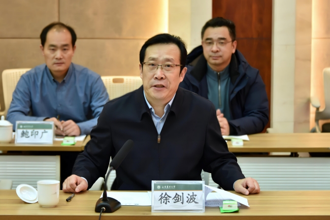 徐剑波指出,在省委省政府的大力支持下,齐鲁工业大学与山东省科学院合二为一,通过积极推进科教融合改革,体制机制创新,不断激发办学活力,通过科教融合探索出一条实现高质量发展的新路径。齐鲁工大和山东农大历史渊源深厚、行业合作广泛、师生交流频繁,“工农”联合取得了众多可喜成果。希望两校在良好合作基础上,不断拓展合作的广度与深度,挖掘新的合作增长点,携手实现两校共赢发展。