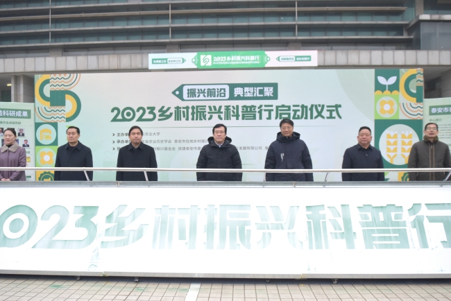 山东农业大学党委书记、山东省农业历史学会理事长徐剑波,泰安市政协副主席、民主建国会泰安市委主委袁久党,山东省科学技术协会学会部部长葛玉芝,山东农业技术推广中心社会事业部部长江平,泰安市社会科学界联合会主席边永彬等出席仪式共同启动科普行活动。