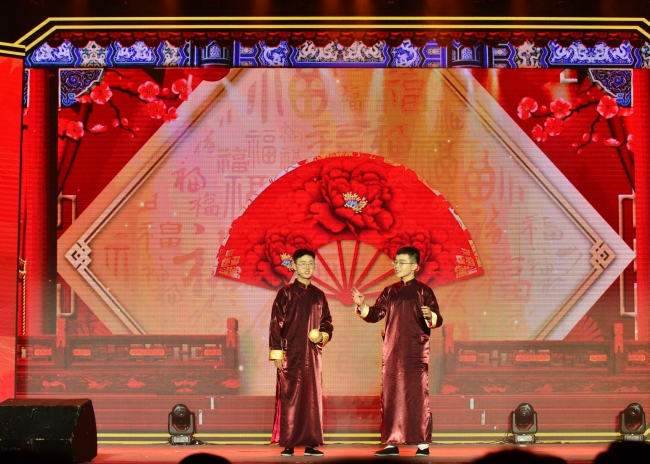 相声《冲一流》表达了农大人踔厉奋发、实干拼搏、矢志冲一流的决心信心。舞台剧《我们的大调研》演绎了暑期“万名学子联万村 我为家乡做贡献”大调研实践经历,展现出山农师生怀揣知农爱农情怀踏入乡村,积极投身于服务一线实践的生动场景。