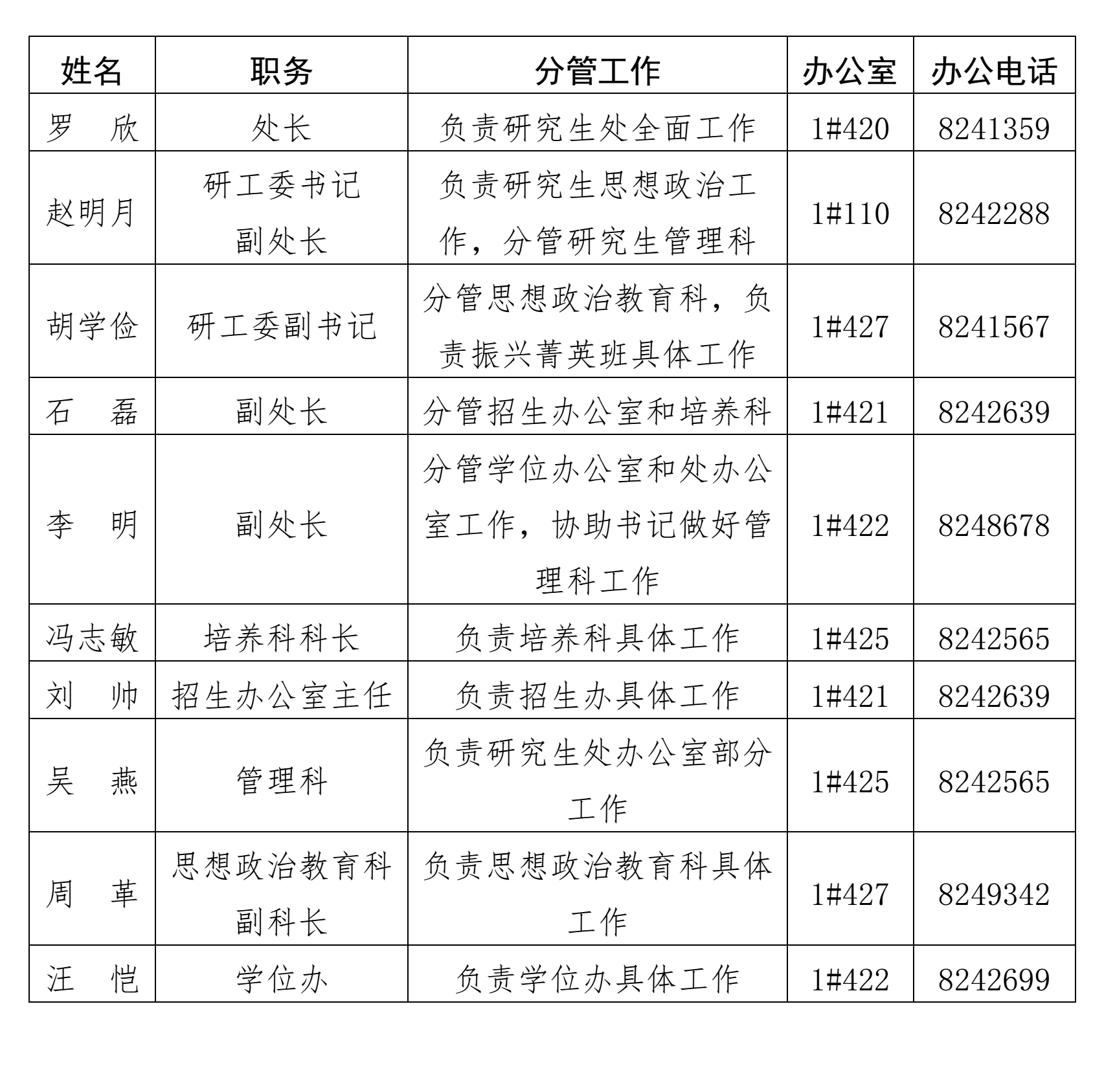 研究生处科室设置及职责分工