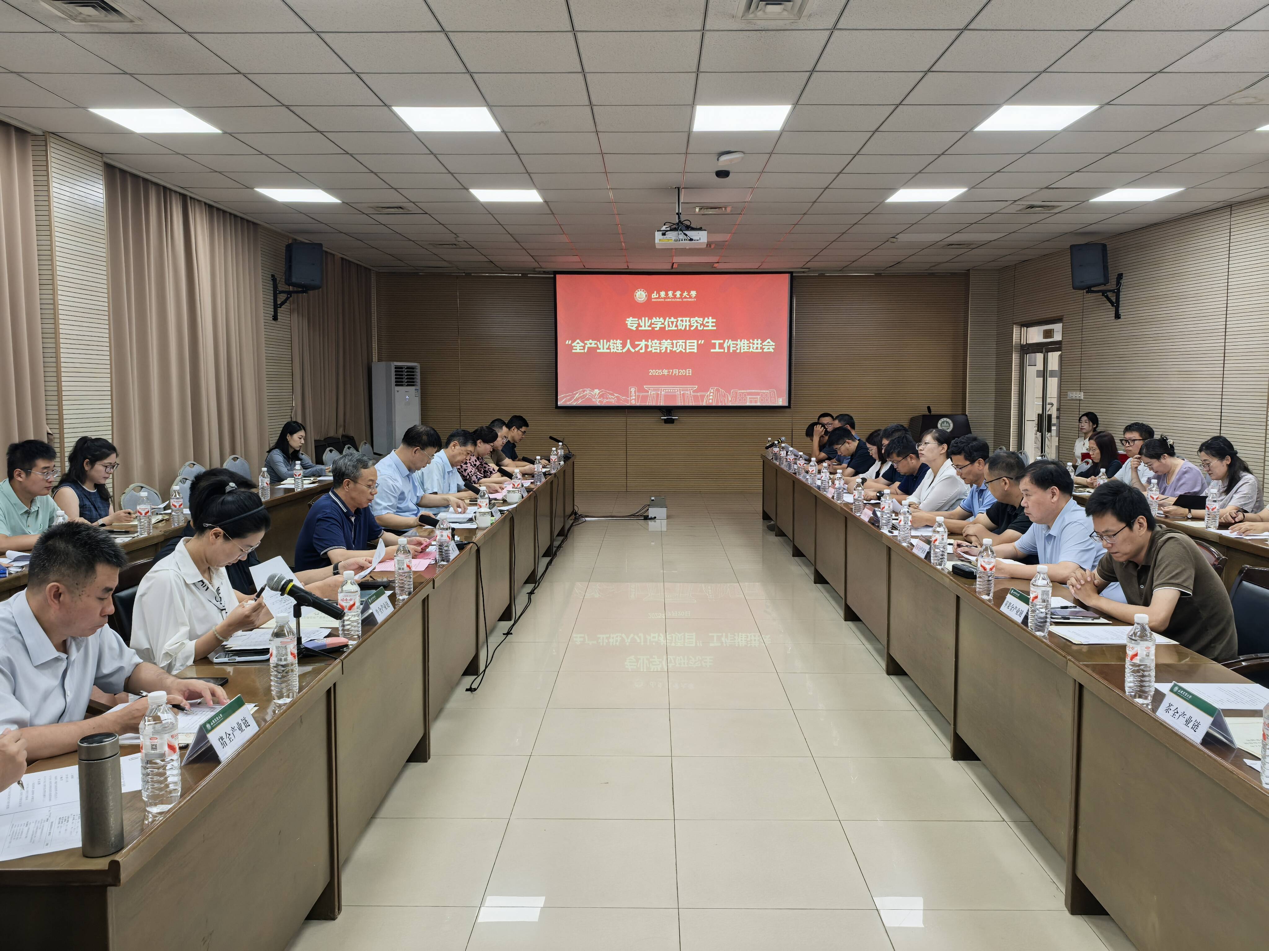 7月20日上午,山东农业大学专业学位研究生“全产业链人才培养项目”工作推进会在文理大楼第二会议室召开。山东省玉米产业体系首席专家、山东省农业科学院院长李向东,山东农业大学副校长林海出席会议。