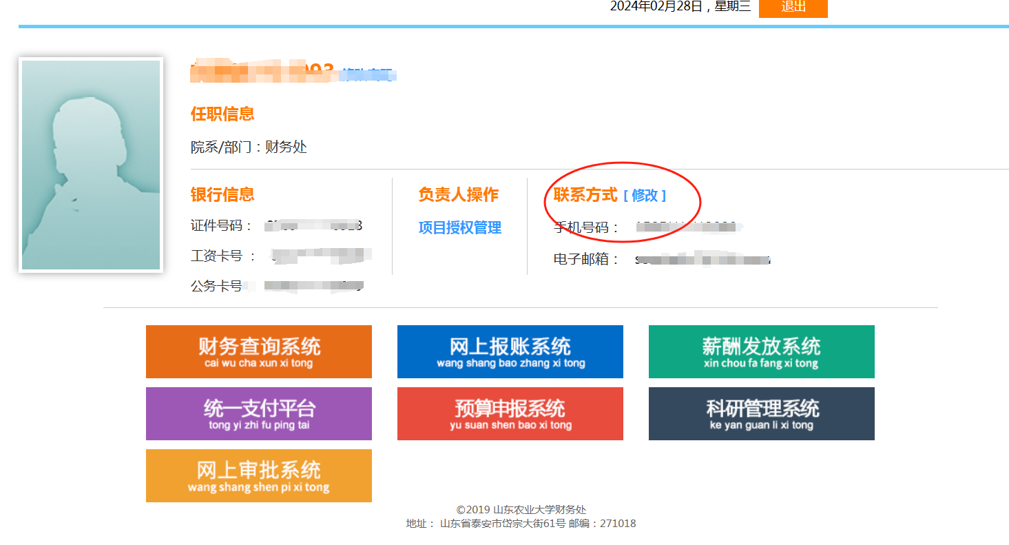 因新版个人所得税系统开始校验纳税人本人手机号,我校“薪酬发放系统”同时升级(设置没有手机号就不能预约,并且手机号唯一、不允许重复)。请各位老师登录财务办公平台,于下周一前更新本人在用手机号(原来登记的固定电话号码请一并维护更新)。