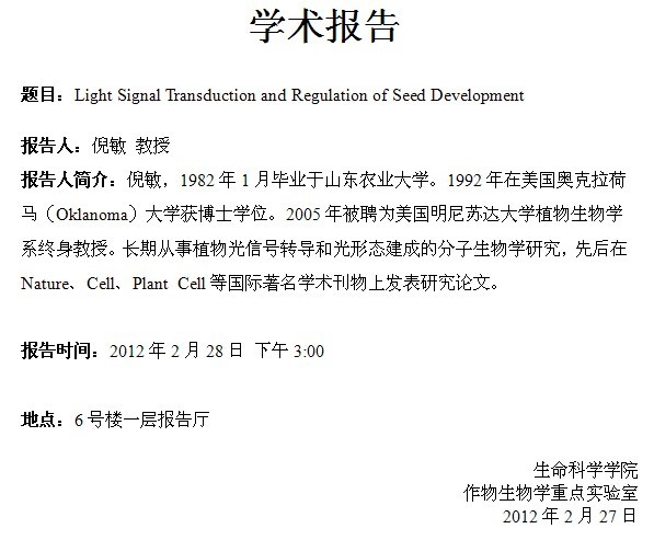生科院特聘教授倪敏学术报告