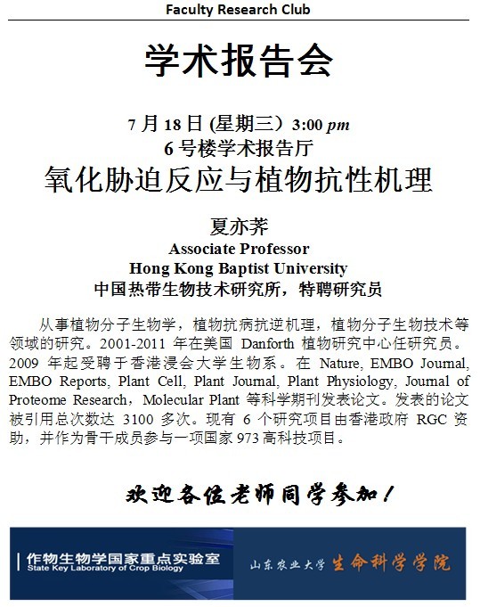 生命科学学院-中国热带生物技术研究所夏亦荠研究员学术报告