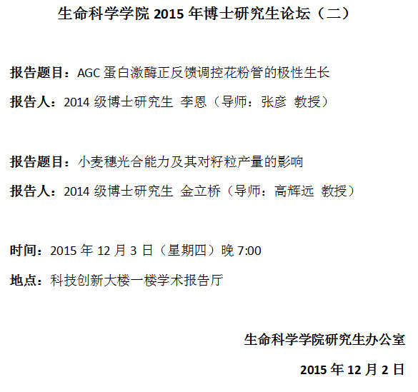 生命科学学院2015年博士研究生论坛(二)