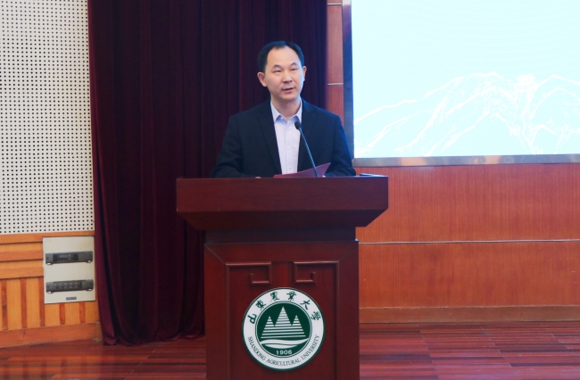 辛杰对大家的到来表示热烈的欢迎,并从学校的厚重务实、立德树人、开放包容、办学实力和优美的校园环境等五个方面对学校的办学优势和人才培养成效进行全面推介,诚邀有志青年积极报考山东农业大学。