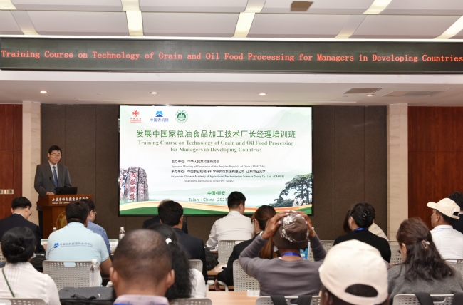 5月25日至31日,发展中国家粮油食品加工技术厂长经理培训班在我校举办,来自巴巴多斯、加纳、尼泊尔、蒙古、巴基斯坦和斯里兰卡的23名农业专员参加培训。山东农业大学党委常委、副校长王勇,中国农业机械化科学研究院集团有限公司国际合作中心主任马腾出席开班仪式并致辞。