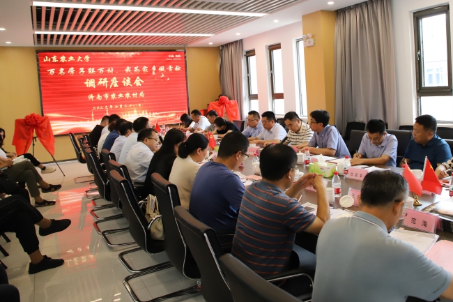 党委常委、副校长高立明带领后勤管理处、基建处、泮河校区管理办公室、植物保护学院、马克思主义学院等单位有关负责同志在济南开展调研对接活动。高立明一行与济南市及县、区农业农村部门负责人进行座谈,了解地方农业农村发展现状,对接大调研活动具体安排,交流下一步校地合作模式。深入山东祥辰科技集团有限公司进行调研,了解企业发展实际需求,探讨今后校企合作方向,举行“大学生就业实习基地”“植物保护学院教学科研实践育人基地”揭牌仪式。