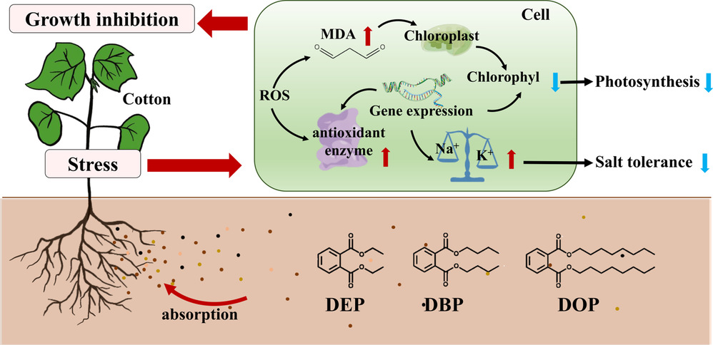 黄河三角洲是黄河流域的重要组成部分,其生态环境脆弱、土壤污染和盐渍化问题严重制约了区域社会经济的可持续发展。目前,有关黄河三角洲地区酞酸酯的生态风险及环境危害还缺乏系统研究。对此,本研究围绕黄河流域生态保护和高质量发展的国家战略,针对黄河三角洲地区土壤酞酸酯污染问题,选取棉花(Gossypium hirsutumL.)为模式生物,分别从个体、生理生化以及分子水平全面揭示了典型酞酸酯(DOP、DBP和DEP)对棉花幼苗的毒性效应及其作用机制。
