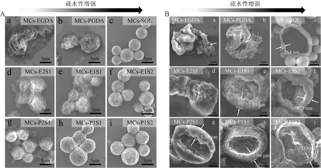 图2. 囊芯亲水性影响囊壳结构及微囊应用效果