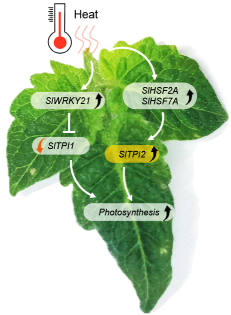 高温胁迫下SlWRKY21、SlHSF2A及SlHSF7A被诱导上调表达。其中 SlWRKY21抑制耐热能力差的SlTPI1的表达。而SlHSF2A及SlHSF7A激活了耐热能力强的SlTPI2表达,增强了高温胁迫下的光合能力。