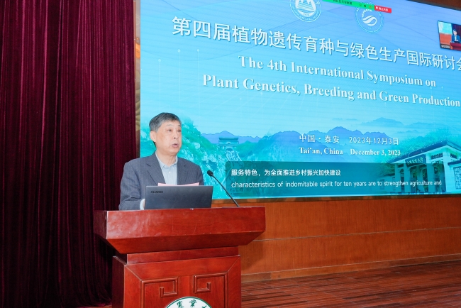 12月3日,第四届植物遗传育种与绿色生产国际研讨会在我校举行。来自中国、美国、德国、土耳其、丹麦、哈萨克斯坦等国家的农业高校和科研机构的农业专家学者齐聚一堂,交流展示现代农业科学研究领域的最新进展,探索国际化产学研用深度合作新模式。美国国家科学院院士、北京大学现代农业研究院院长邓兴旺教授,中国工程院院士、河南省农业科学院院长张新友教授出席会议并做报告分享,山东省农业农村厅副厅长王敬东,山东农业大学副校长林海,山东省农技推广中心作物一部部长彭科研出席活动。
